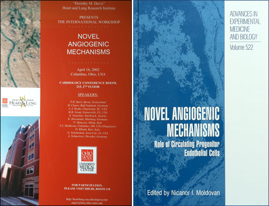 Dr. Moldovan’s research interests are in Regenerative Medicine (mainly the identities and functions of circulating stem/progenitor cells) and Tissue Engineering (neovascularization of the peri-implant space). He has been working in the Dorothy M. Davis Heart and Lung Research Institute since its inception in 1997, being recruited from Johns Hopkins University (where he was a Post-doctoral Fellow in Cardiology). At Ohio State, Dr. Moldovan organized an International Symposium to address the emerging roles of blood-derived progenitor cells in neovascularization (see the images below).Dr. Moldovan recently completed an NIH-funded study on how to improve the integration of biosensors with the tissues, and one intended to develop a better method for detection of the circulating stem/progenitor cells. This new assay provides fresh information about these cells’ functions and perturbations in cardiovascular pathology, and it is now being applied to the study of body’s response to implants.