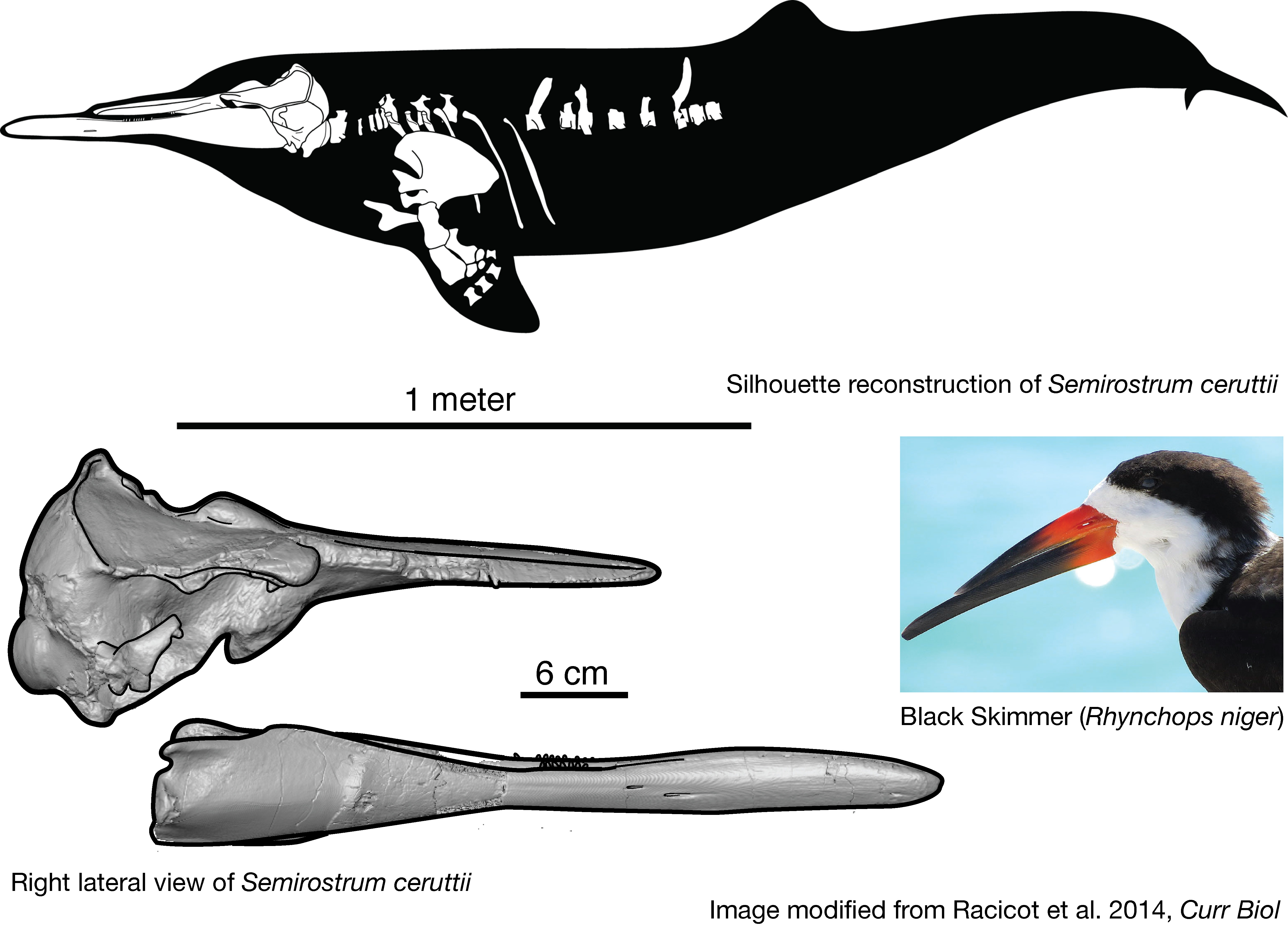 - High-resolution CT scans will be acquired of the jaws and skulls of modern analogs (half-beak fish, skimmer birds, and close relatives), extant porpoises, and Semirostrum.