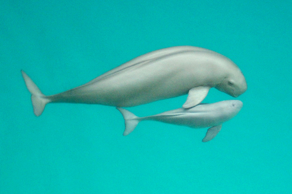 Finless porpoises (Neophocaena phocaenoides) (note the blunt faces).